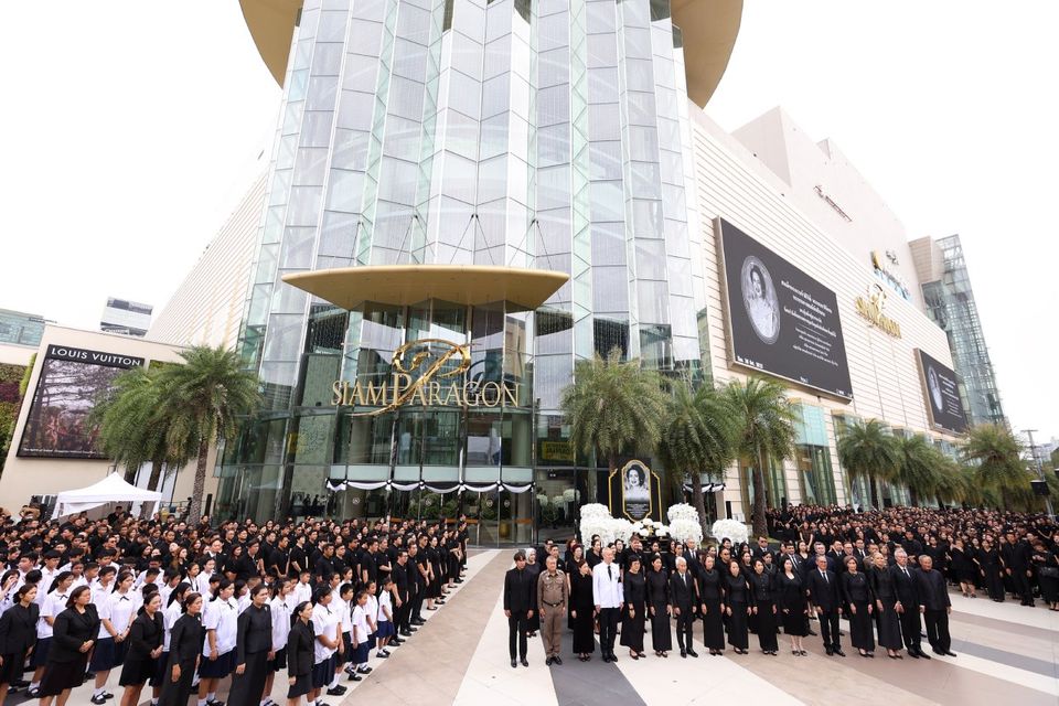 ตามที่สมเด็จพระนางเจ้าสิริกิติ์ พระบรมราชินีนาถ พระบรมราชชนนีพันปีหลวง เสด็จสวรรคตเมื่อวันที่ 24 ตุลาคม 2568 คณะกรรมการ ผู้บริหาร และพนักงาน กลุ่มบริษัทสยามพิวรรธน์ และบริษัท สยามพารากอน ดีเวลลอปเม้นท์ จำกัด พร้อมด้วยพันธมิตรภาครัฐและเอกชน และประชาชน ร่วมน้อมเกล้าน้อมกระหม่อม ถวายความอาลัยด้วยความจงรักและภักดีอย่างสุดจะพรรณา และรู้สึกสำนึกในพระมหากรุณาธิคุณอันล้นพ้นอย่างหาที่สุดมิได้ที่พระองค์ทรงปฏิบัติพระราชกรณียกิจด้วยวิริยอุตสาหะในทุก ๆ ด้าน เคียงข้างพระบาทสมเด็จพระบรมชนกาธิเบศร มหาภูมิพลอดุลยเดชมหาราช บรมนาถบพิตร พระมหากษัตราธิราชเจ้า ผู้ทรงพระคุณอันประเสริฐมาตลอดรัชสมัย พระองค์ทรงเป็นมิ่งขวัญและศูนย์รวมใจของไทยทั้งชาติ ตลอดระยะเวลาที่ทรงปฏิบัติพระราชกรณียกิจ ทรงเสียสละและอุทิศพระชนม์ชีพเพื่อพระราชภารกิจต่าง ๆ อันนำมาสู่ความเจริญรุ่งเรืองมั่นคงของประเทศชาติ และความผาสุกของประชาชนชาวไทย