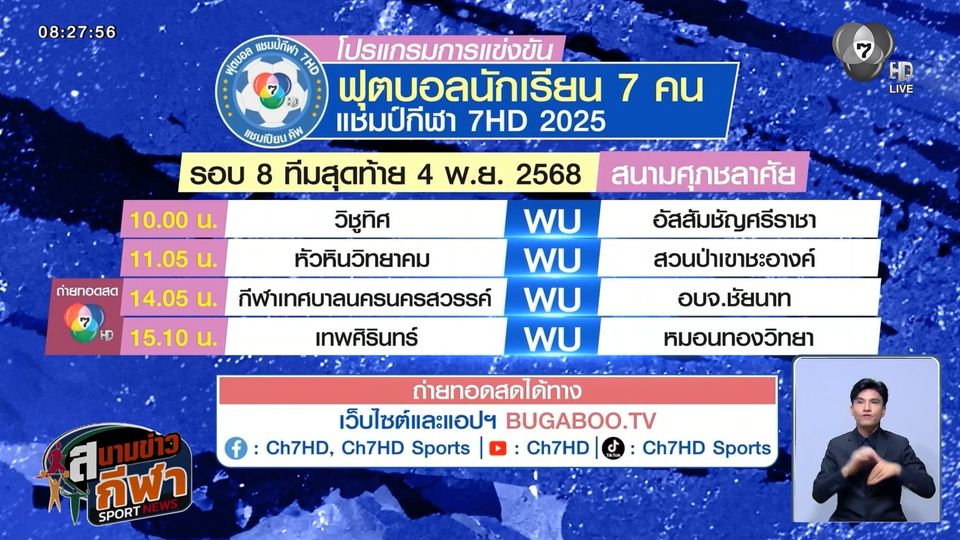 สนามข่าว 7 สี - ฟุตบอลนักเรียน 7 คน แชมป์กีฬา 7HD แชมเปียน คัพ 2025 เตรียมฟาดแข้ง รอบ 8 ทีมสุดท้ายวันนี้ ช่อง 7HD ถ่ายทอดสดให้ชม
